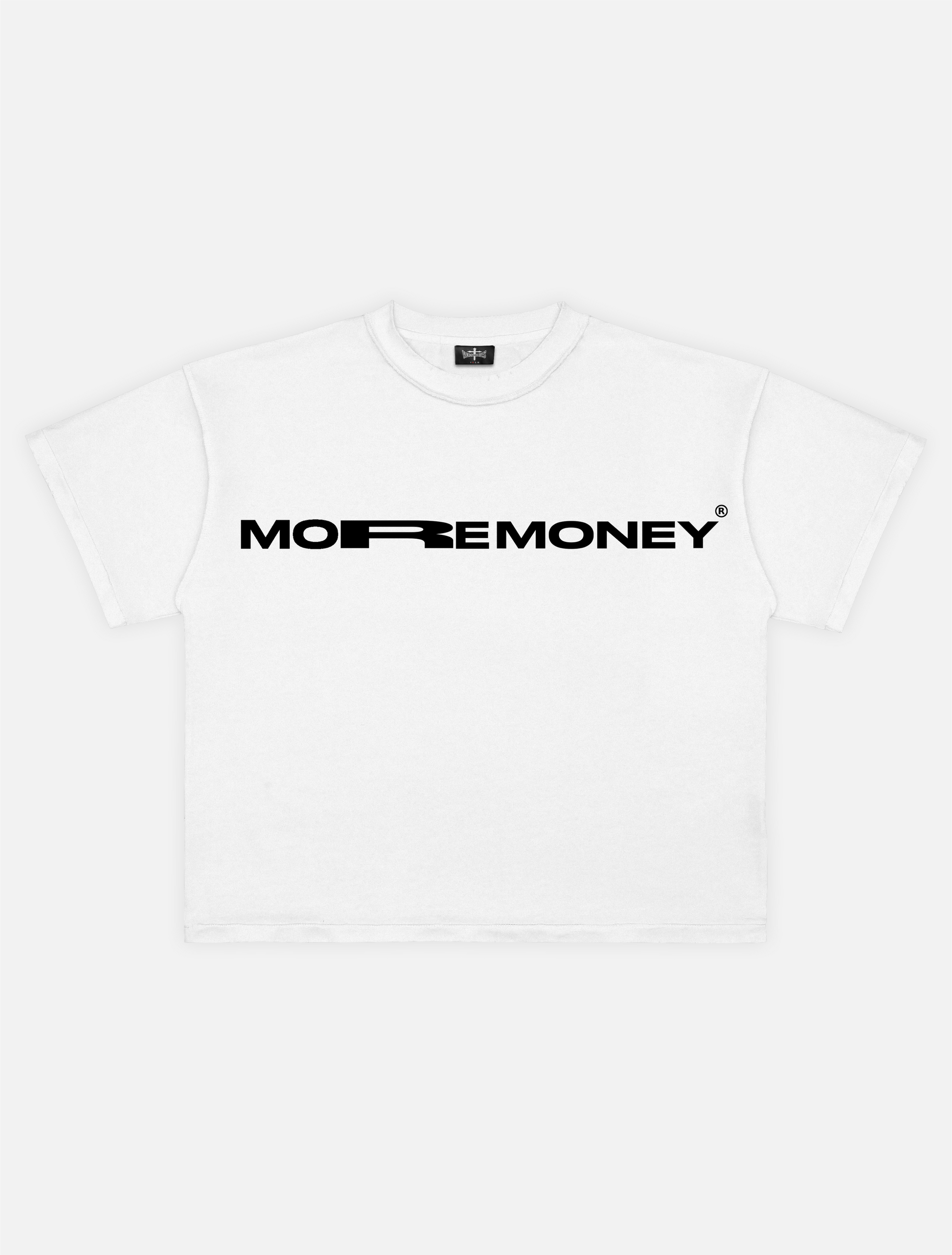 Camiseta blanco de corte oversize, confeccionada en tejido 100% algodón pesado (260g), lettering delantero alta densidad color negro