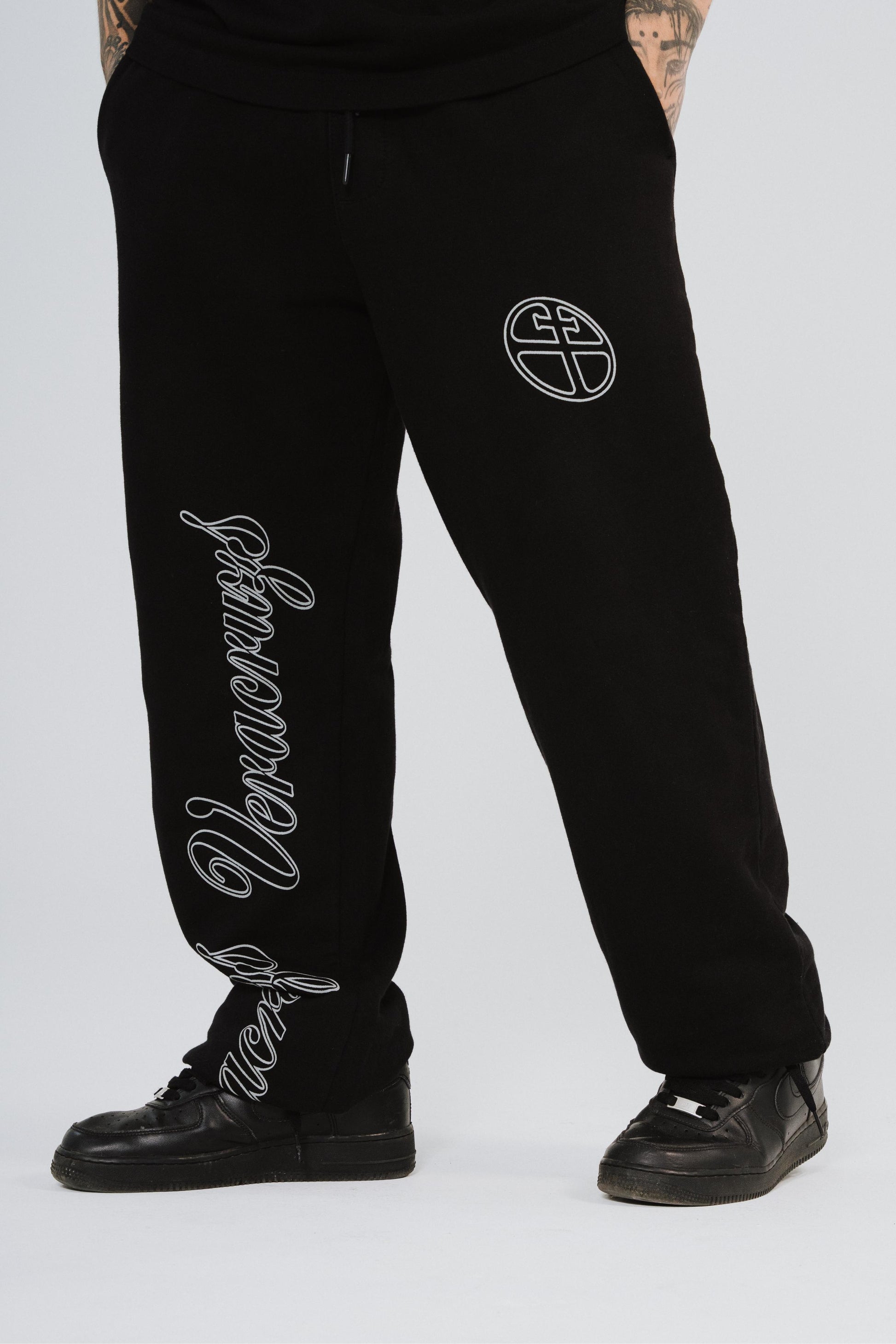 Sudadera de Corte recto negra oversized, confeccionada en tejido 100% algodón pesado (320), estampado gris de alta densidad.